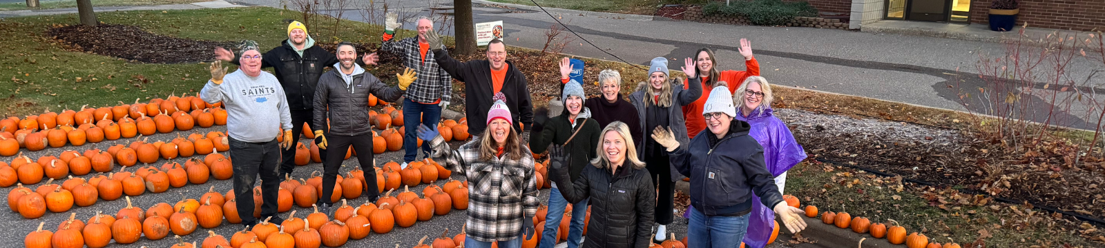 Each fall since 2005, we welcome the community to our parking lot to host a morning of fall fun at our Mendota Heights location. More than 800 pumpkins as well as donuts and cider are given to clients and neighbors at Gateway Bank's Annual Fall Festival.
